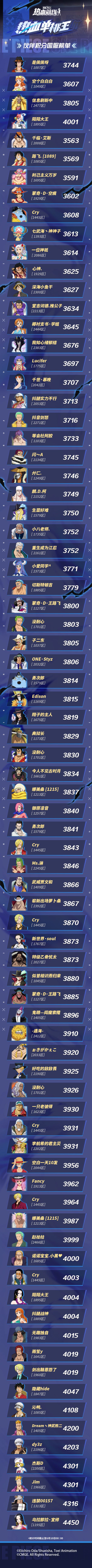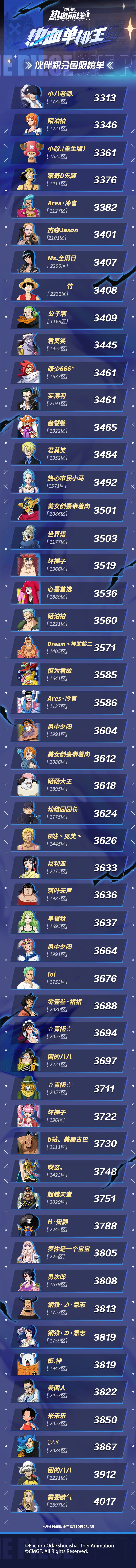 战斗收场,伙伴积分国服榜单出炉!快来看看这次的榜单中有没有船长你的身影?