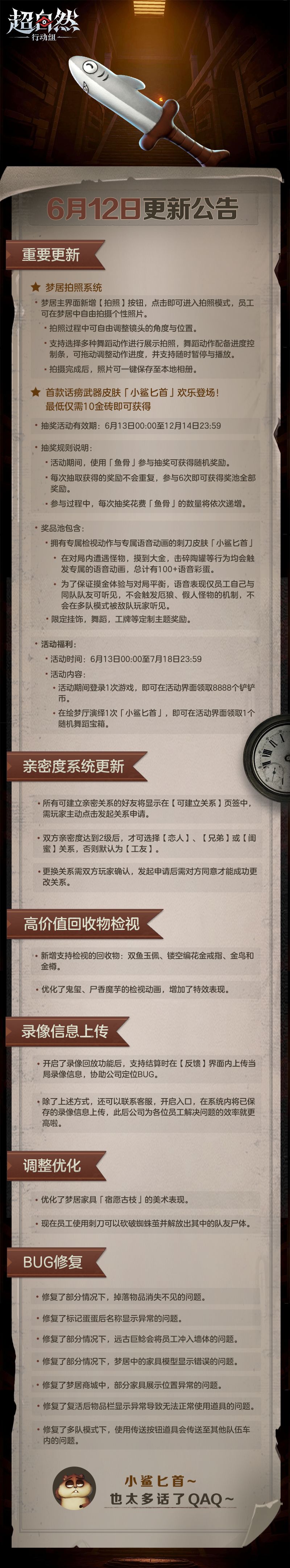 6月12日更新——首款话痨武器皮肤上线!梦居可以拍照啦!