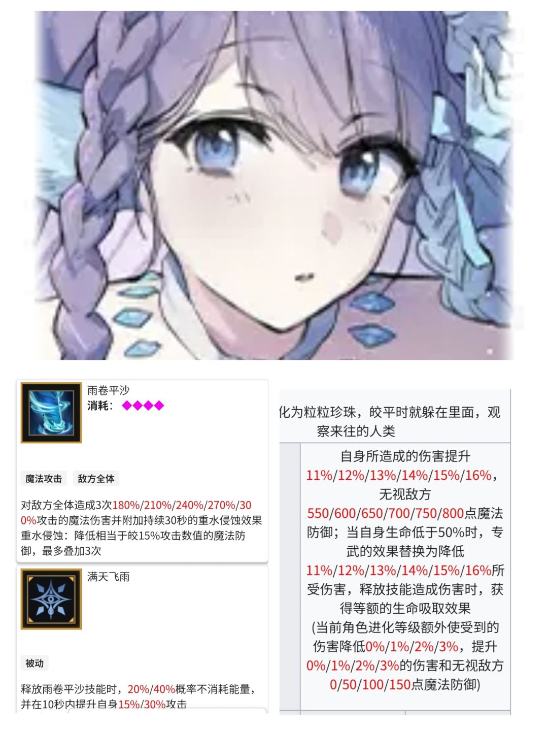 角色自身的辅助能力并不算突出,但胜在持续时间长,自身混沌技能只有二费,也可以用来快速启动,同时因为是水属性可以凑三人的加成。
