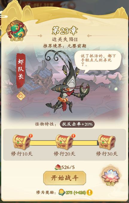 元婴之前的历练关卡不需要过于考虑策略搭配,只要境界实力达标,就可以靠战力数值横推过关。元婴之后的关卡就开始需要考虑策略搭配,组建自己的主玩流派。