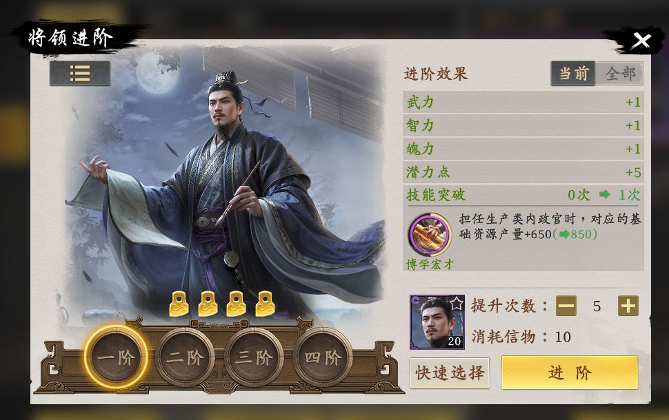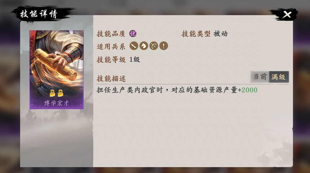 4.博学宏才-四星-给生产类官员提供产量加成,建议给粮草官使用