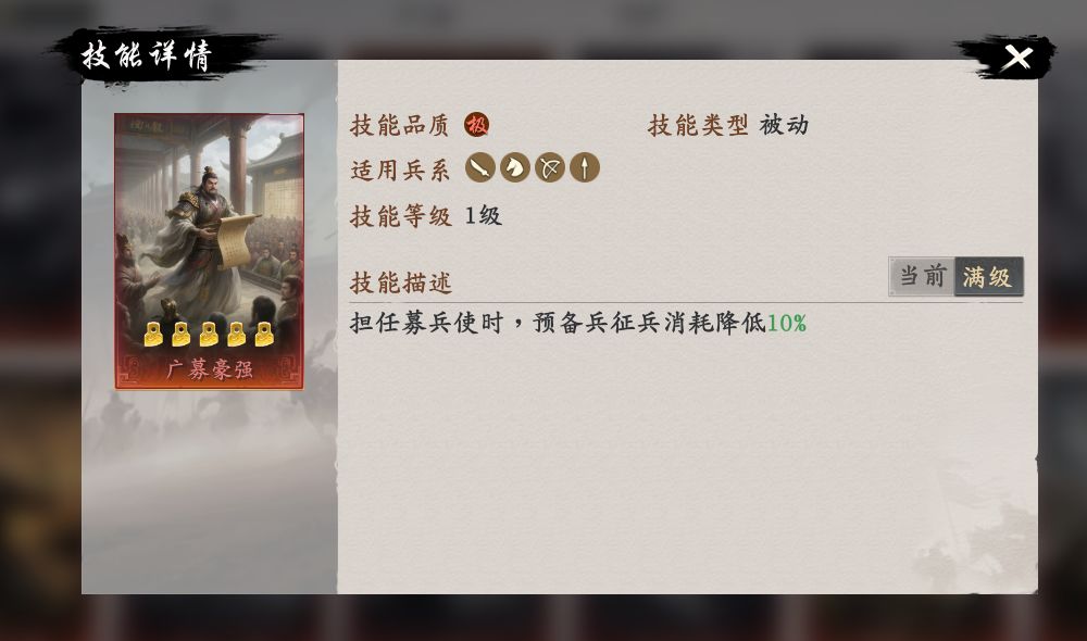 2.广募豪强-五星-给募兵使装备,减少征兵消耗