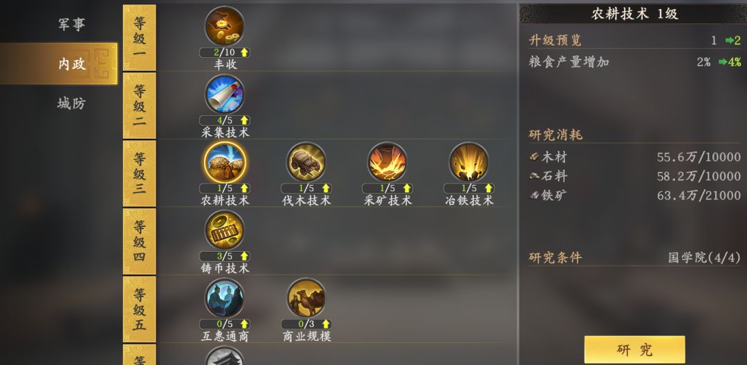 内政官与主城建设、科技发展是相辅相成的,建筑升级与国学院研究也会带来内政产出的增加,本篇就不做过多赘述了。