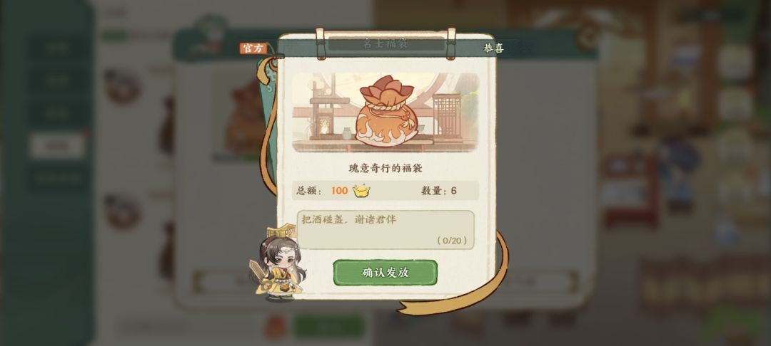 2.可以发和收福袋,福袋里是元宝。