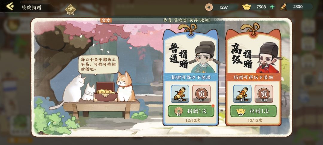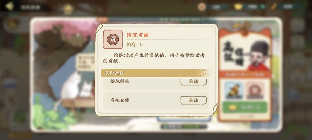 5.可用铜币或者元宝捐赠,可获得绘卷和绘院贡献,可用来兑换绘院商店里的道具。