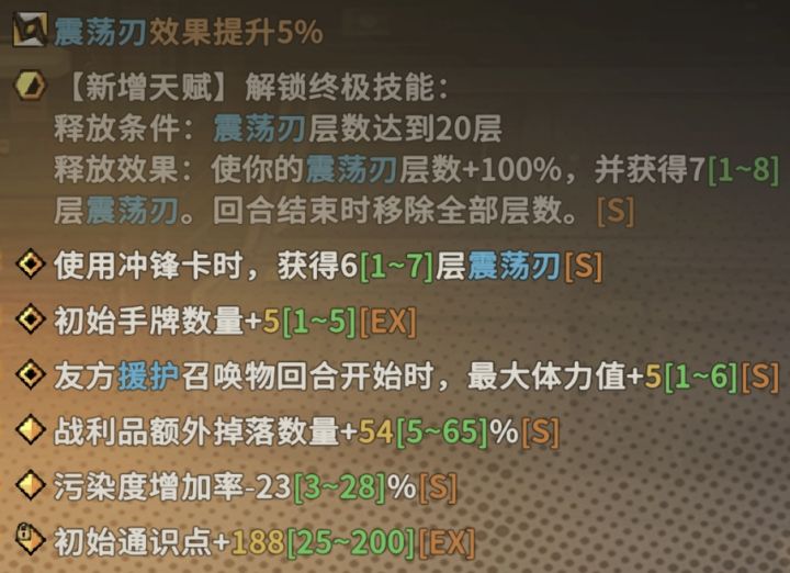 首先,以装备为例子,我认为大部分角色都需要有金色的抽牌词条,不然开局抽不到卡很影响体验。以现有的刷装备机制,基本可以可以自选2个内构词条+2个外壳词条(前提是有一定的时间积累,新玩家刷的差不多就行)。我的内构词条选的是抽牌+冲锋获取震荡。外壳词条由于不是特别关键,我就随缘了。打造情况如图2。
