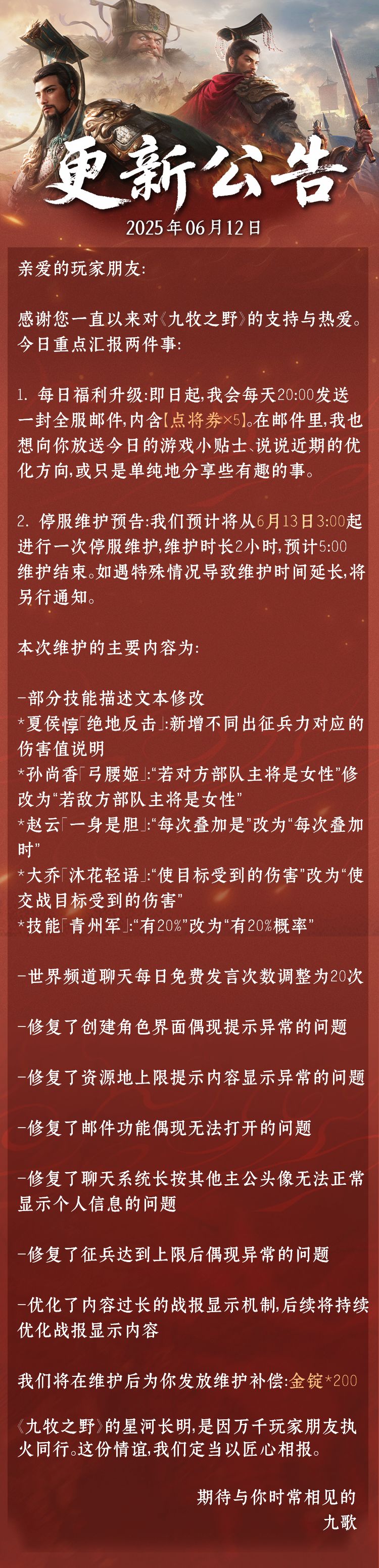 【官方公告】6月12日游戏更新公告