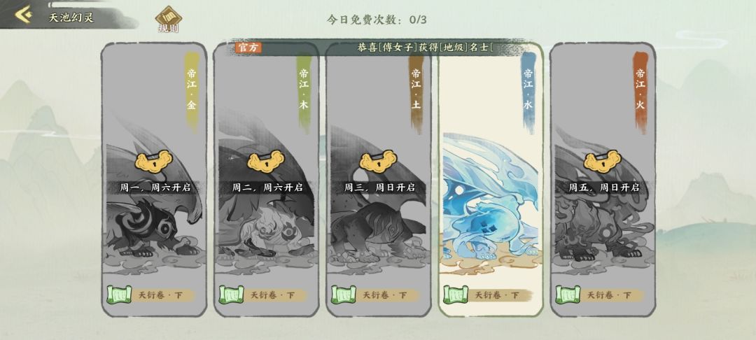 需要打“天池幻灵副本”,注意不同的“天池幻灵副本”的开放时间不同!