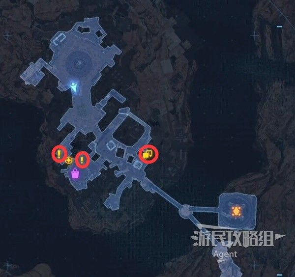 六边形四角星标志代表主线目标、感叹号代表支线任务、告示板处可接到各种小委托任务。