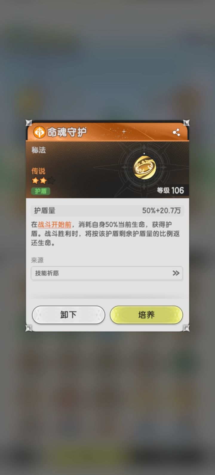 如图,自带20万固定护盾值,要知道目前106级才60万左右血量啊,配合天使回血,也就是说骑士有着155%的血条(75%血量以及相当于最大生命值80%的护盾)。基本可以把危情守护跟水盾替换为其他输出技能了。