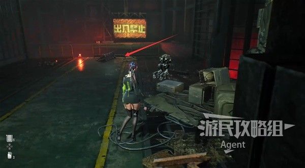 左边门出去有个小机器人。同时还可以看到个挡路的列车先不管,等下到后面你就知道了,挡路的列车被移开后,可打通回到这里的捷径。射爆油桶摧毁挡住列车门的怪物,继续往前走。