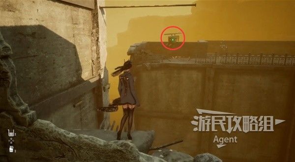 回到沙漠,从下图位置跳到上面去。