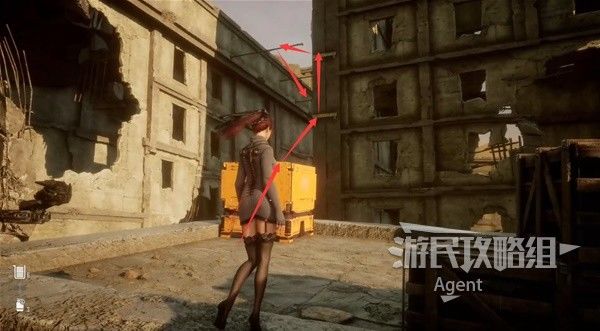 把黄色立方体卡在跷跷板下面,然后就可以冲刺跳过去抓住横杆,跳到对面房顶。