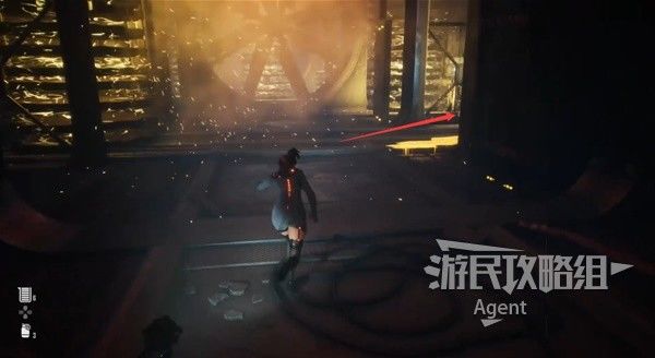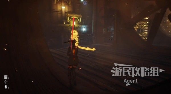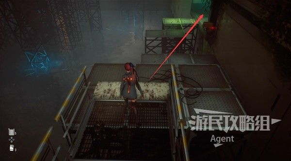 有激光靠近时,可吊在杆上,待激光远去再起来继续走。最终抵达前面房间,按按钮关闭激光。