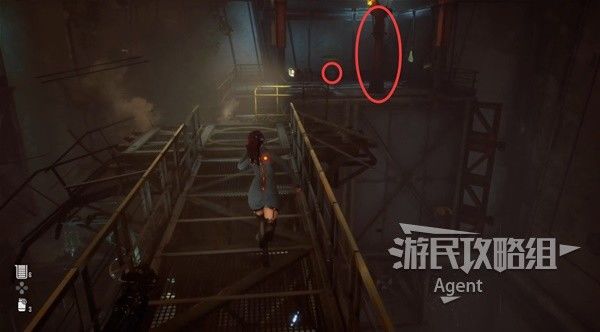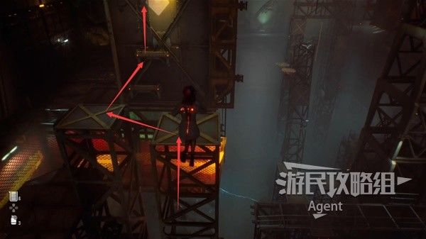 经过营地来到实验室废墟,需要经过一路攀爬跳跃,抵达对面的门。注意路上有些隐藏的岔路,可以搜刮到一些好东西。起点如下图,先往左跳。