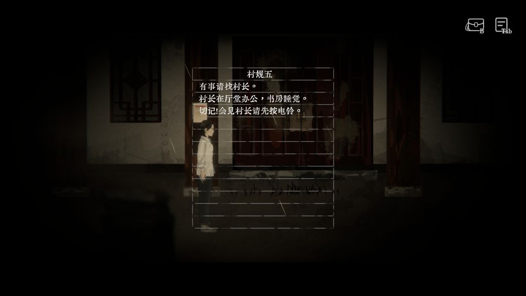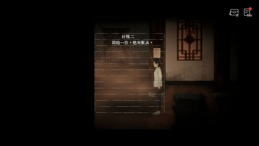 大家都懂的,民俗的才是恐怖的。在游戏中,玩家将化身大学生小张,回到偏远的山村中,为刚刚去世的祖母进行守灵,却遭遇了惊心动魄的事件。在这个古老的村庄里,有着各种奇奇怪怪的村规:村规2,团结一致,绝对服从;村规5,有事情找村长;村规8,严禁在张家大院奔跑;村规15,任何村人禁止进入后院……单独来看,每一个村规都稀松平常,但是必须执行的要求,却透露着诡异。在这个村子里,必须严格遵守村规,否则就会遭遇很可怕的事情,这似乎是一个规则怪谈?
