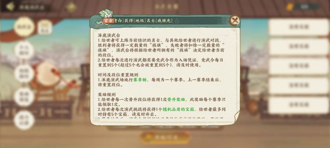 4.演武还获取元宝,涿鹿玉符以及可以送给名士的礼物。