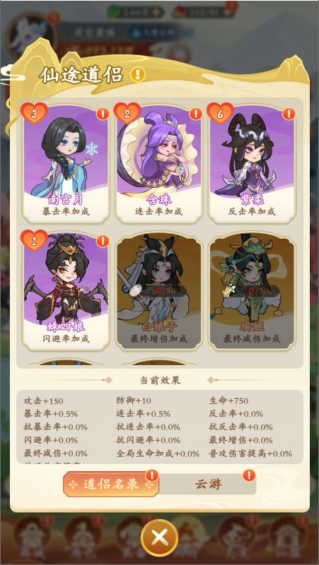 消耗精力进行云游,云游途中会随机偶遇道侣,增加好感度。