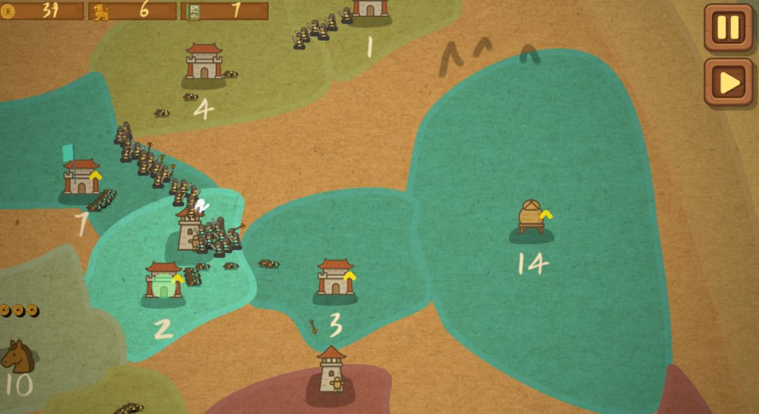 玩家可以培养不同的兵种科技进行游戏,还可以配合不同的武将,提升兵种能力