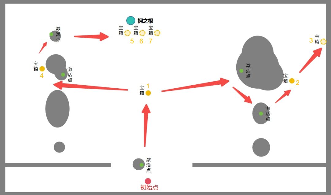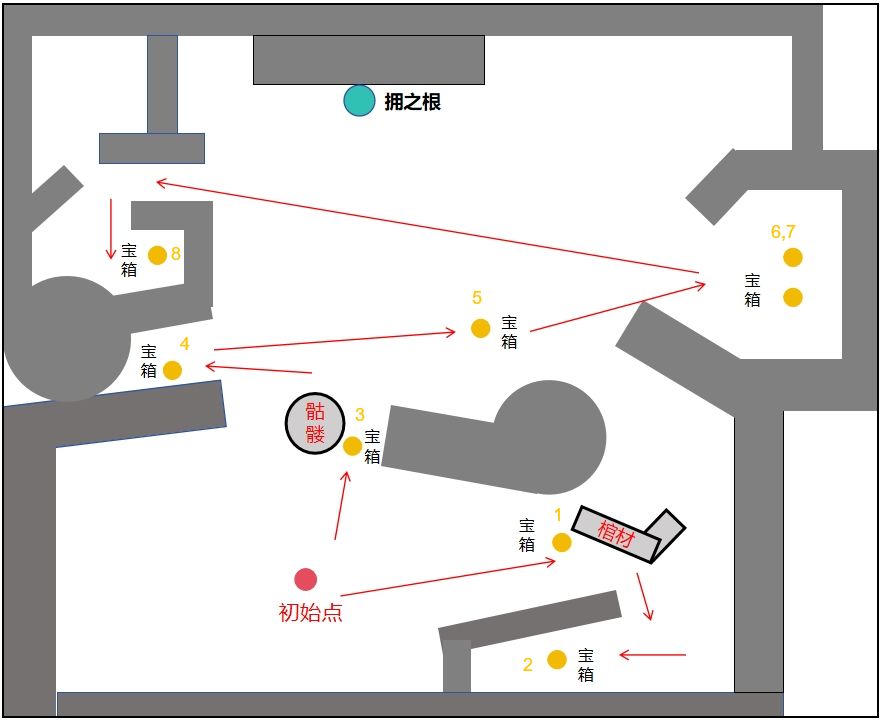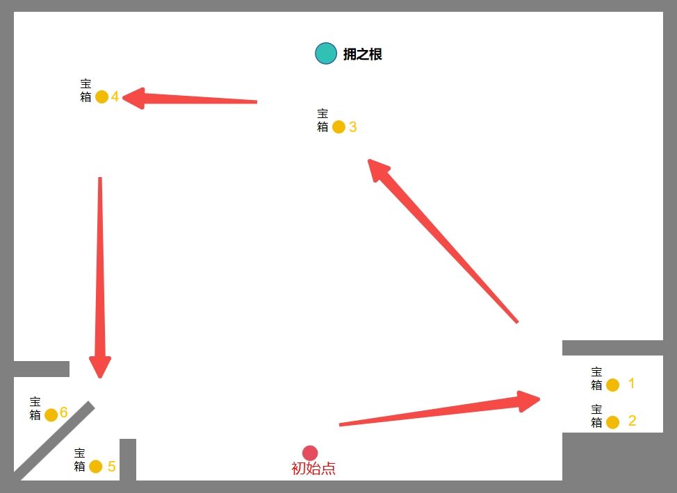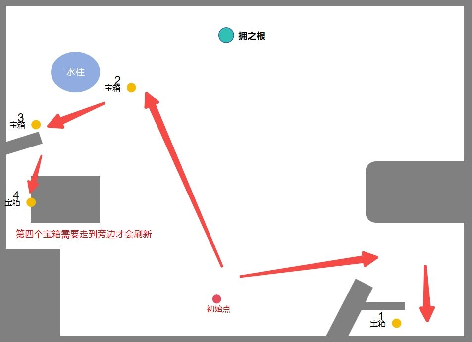 这张地图一共有4个宝箱,找不到方向的小伙伴可以参考这个方位图。