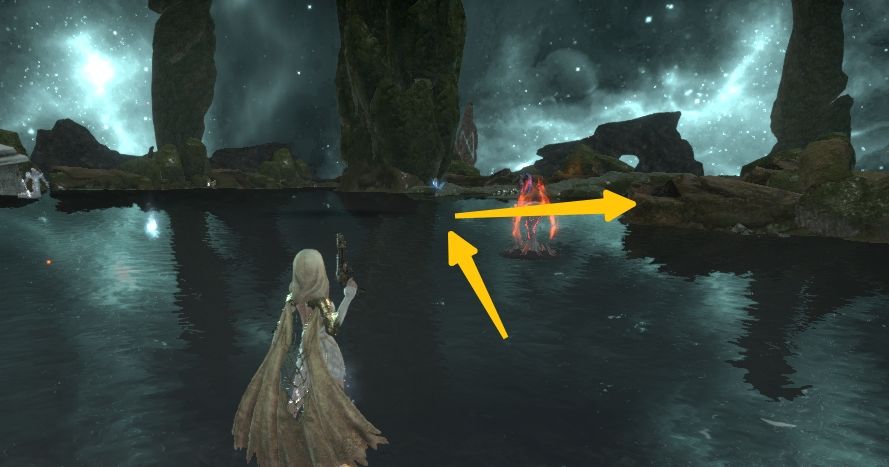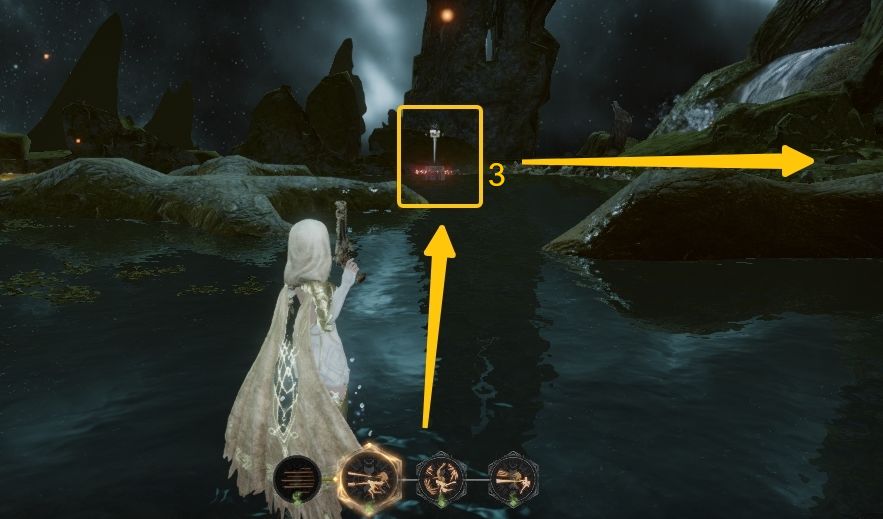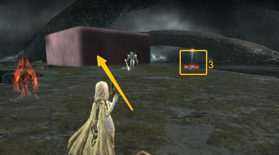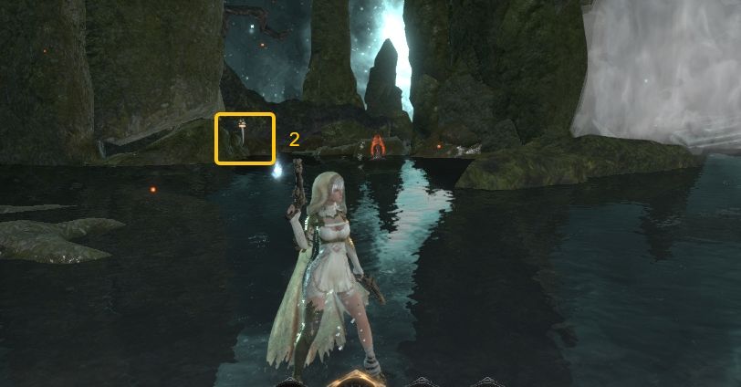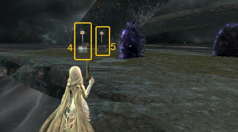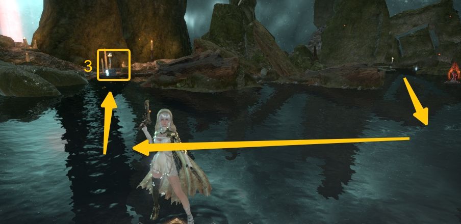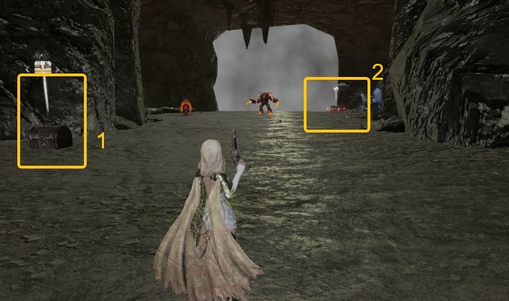 在新平台上怪物旁边有第3个宝箱,之后再往前直走。雾气里有另外2个宝箱。