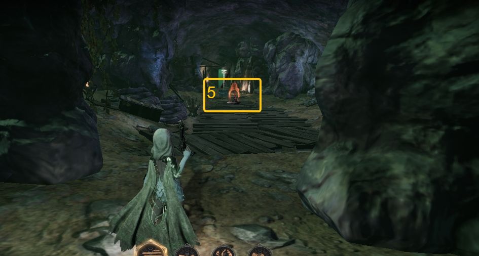 走到头可以看到在第4个宝箱,接下来往拥之根旁边的第5个宝箱处走。