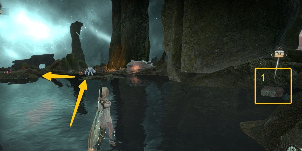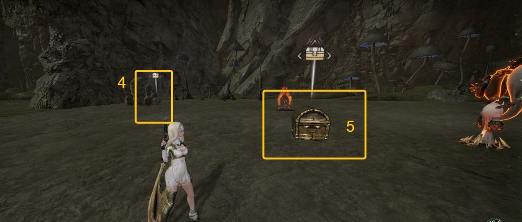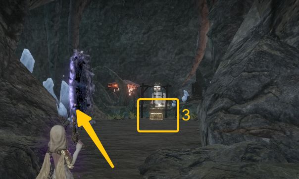 之后再往回走到洞窟里,走到洞窟后面的柱子后会在中间刷新出第5个宝箱。