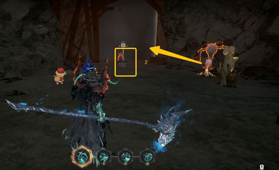 接下来往前走,有1个宝箱。最后,在拥之根的大厅里有1个宝箱,击败周围的蘑菇怪还会解锁另1个宝箱。