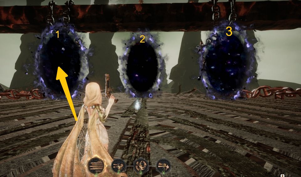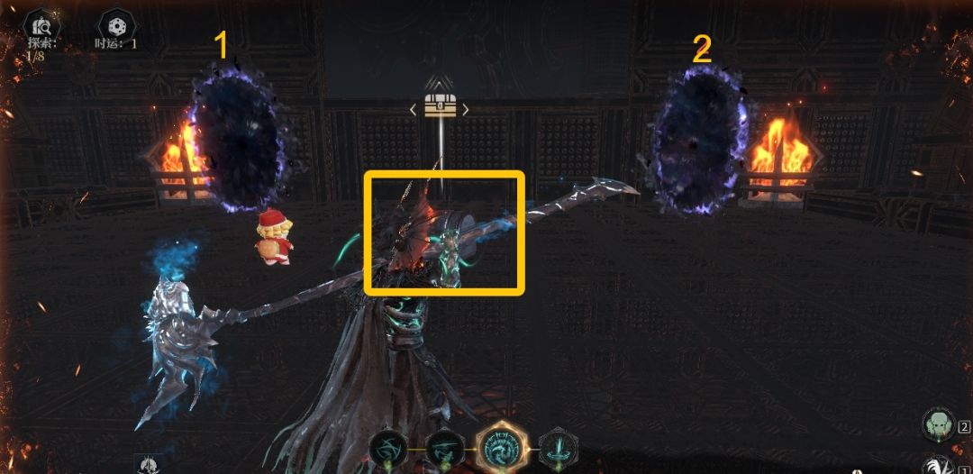 这张地图一共有3个宝箱,,在初始点选择左边的1号门。