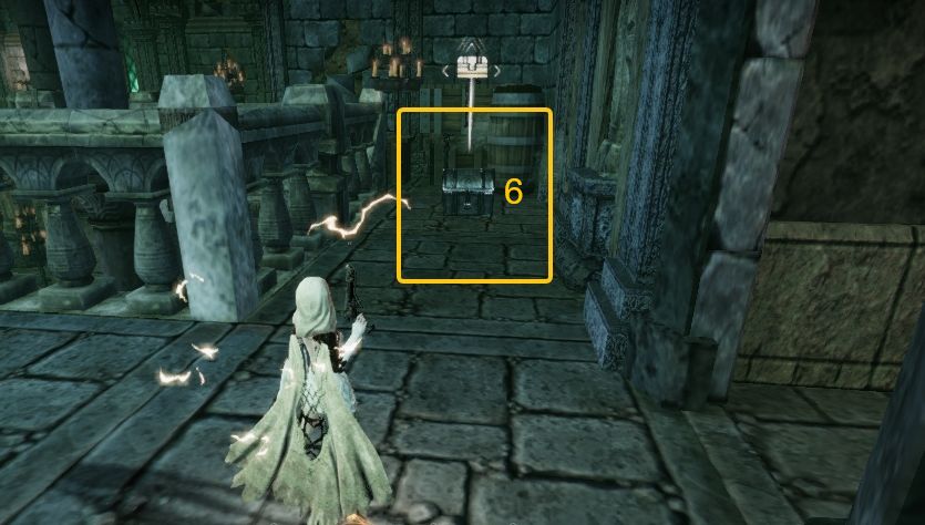 然后继续往前走,第6个宝箱在楼梯口的右边。