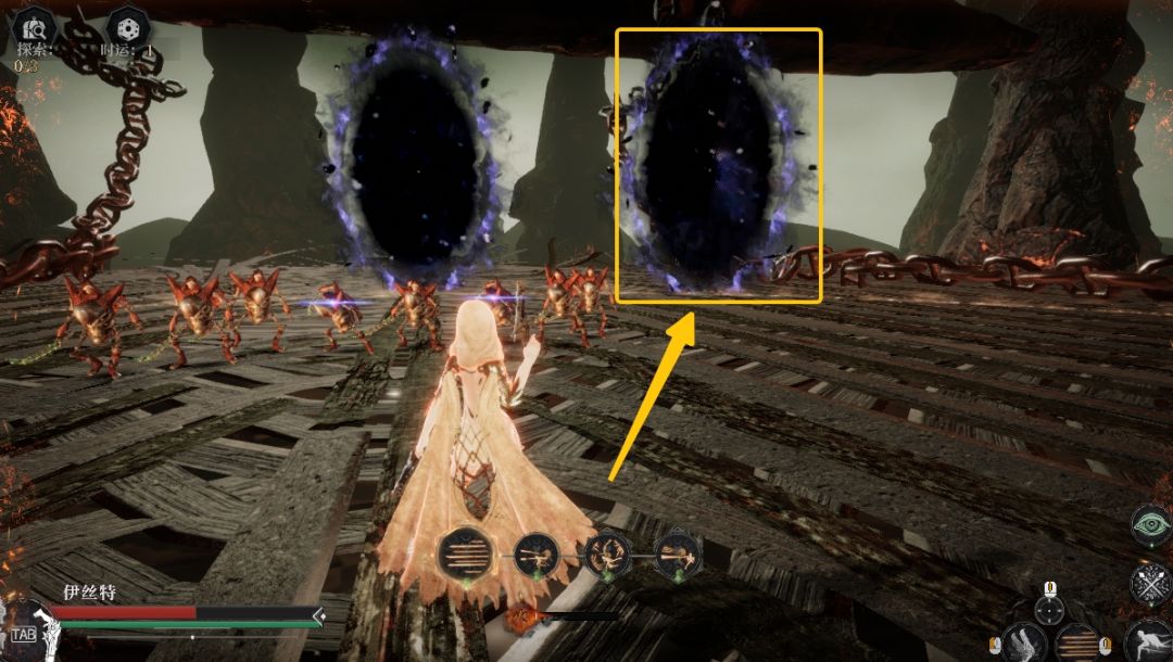 在第2个宝箱处继续向前再左转,点击这个红色光球。