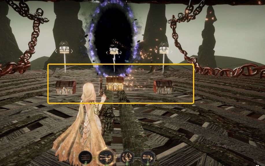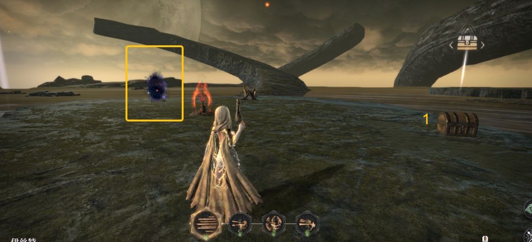 然后我们可以向后走,穿过迷雾后就能看到那个宝箱,拿到后点击旁边的门可以传送回初始点。