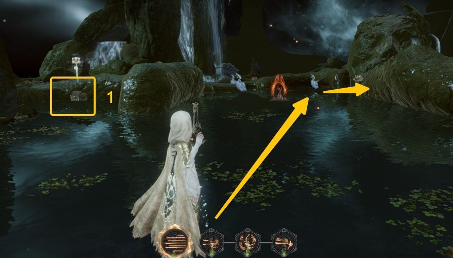 继续向前走在拥之根旁边有1个宝箱,之后继续向前走穿过迷雾。