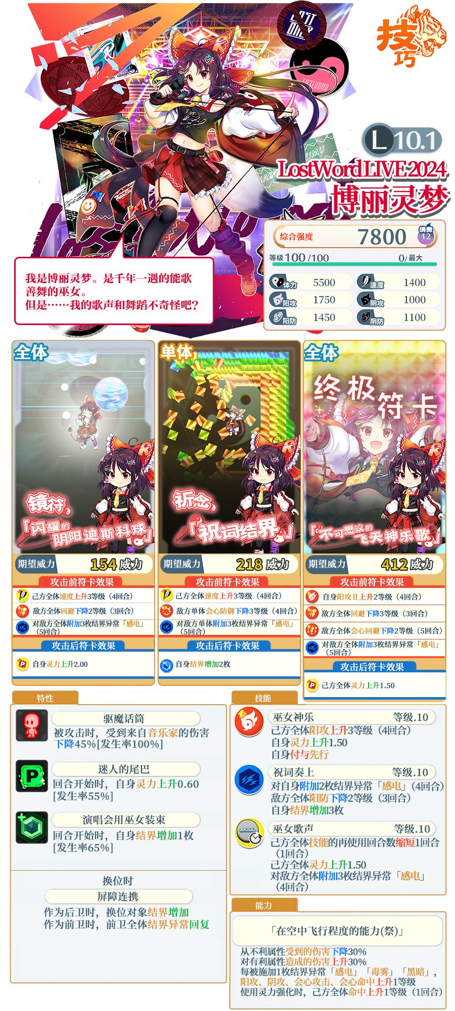 ※「[LostWord LIVE 2024]博丽灵梦」需要使用同名伙伴或者「巫之替身」进行界限突破。不同泛异记号的伙伴、「巫之替身」以外的替身无法对其进行界限突破。