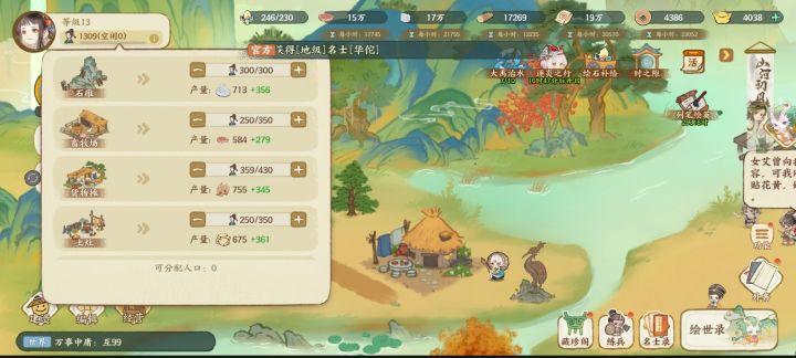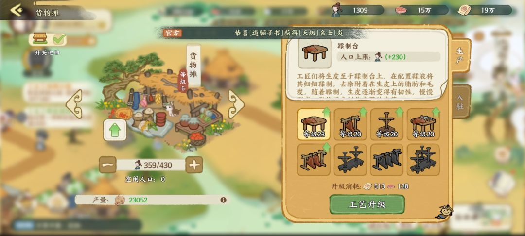 1.建筑:货物摊按时间产出铜币,升级工艺和安排人口,入驻名士都可以增加优化货物摊产出铜币。