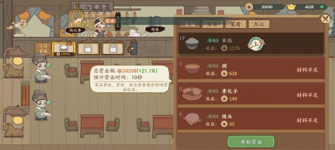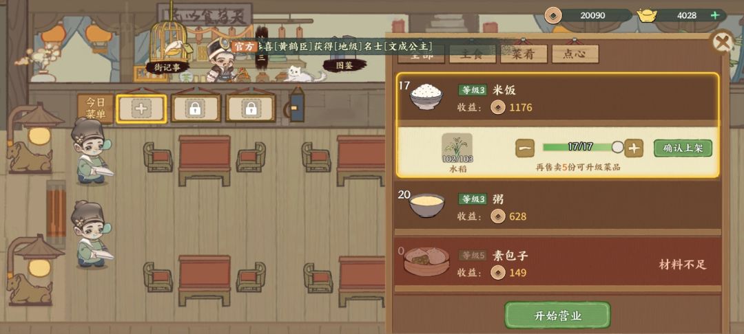2.种植作物做成食物到食台贩卖,这里我推荐水稻,虽然水稻需要的成熟时间比前面2个长,但是能赚取的铜币非常值,也不需要老是看着作物成熟怕很快就成熟了来不及收取。
