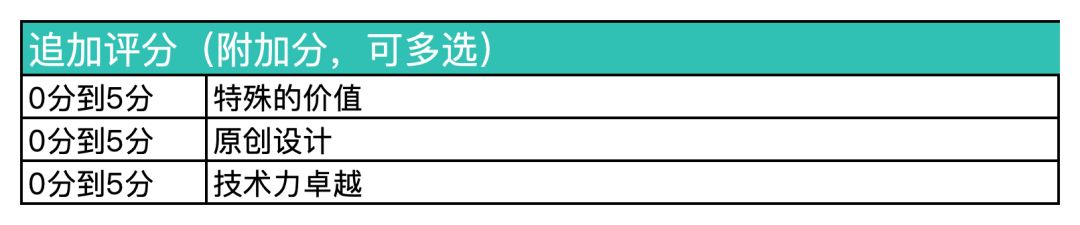 什么是附加分呢?就是在分数相近下,进行的额外评选规则,该规则可以针对在相同设计元素下,进行设计作品的对比,从而去评判设计作品的完善度、还原度和合理性。
