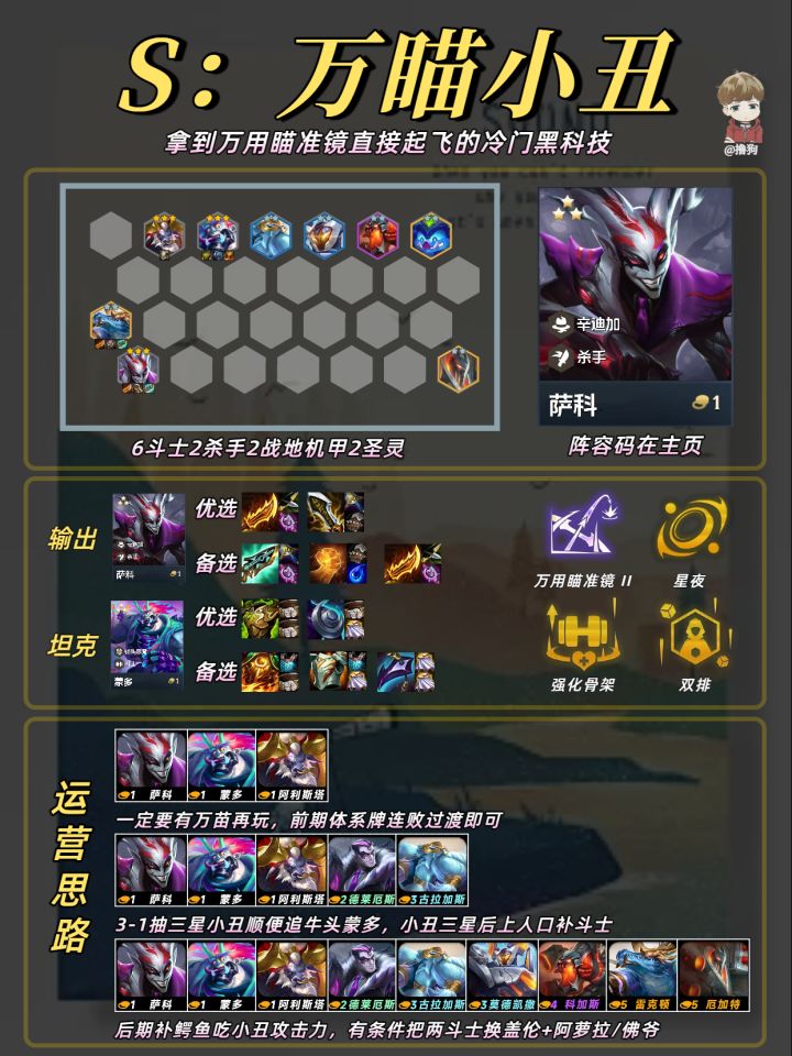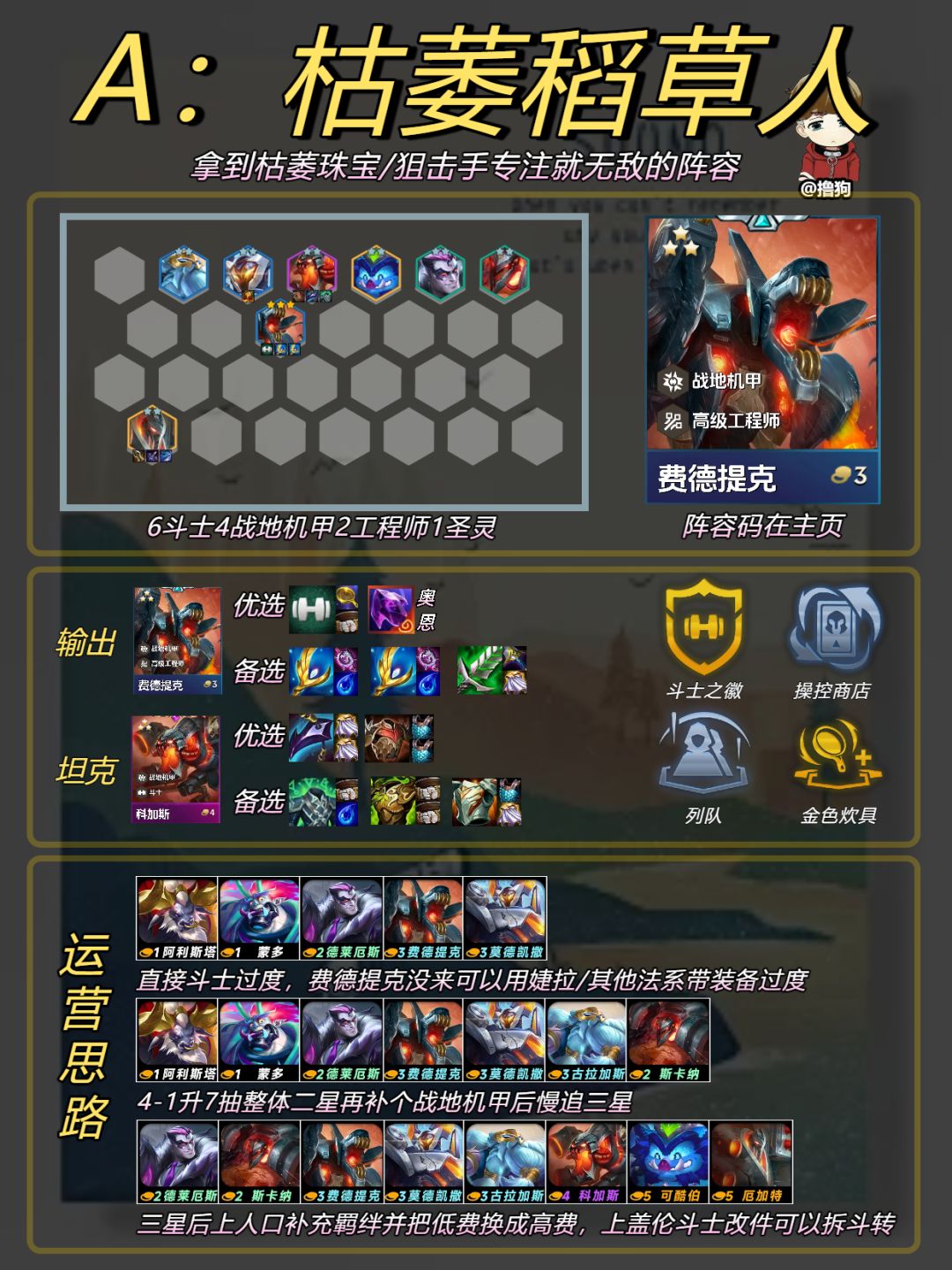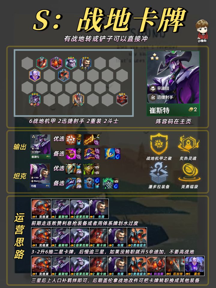 公众号爱下棋的撸狗有全部阵容攻略及代码,每日更新阵容榜单,下棋攻略