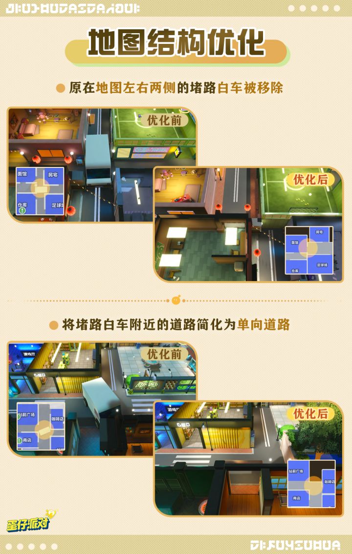“站前小镇”地图上线后,皮蛋一直积极关注着各位蛋仔的反馈与建议,为了保证各位的游玩体验,皮蛋带着好消息来啦!