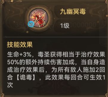 说了一大堆看不懂没关系,一句话概括就是:毒医平均每回合给敌方单体附加两层毒,自己行动一次加一层,敌方行动一次加一层,之后这个毒等到敌方受到治疗后立即结算。
