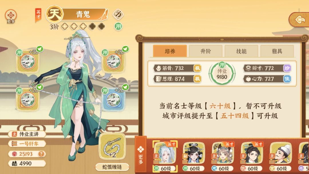 名士佩戴雅具,可获得雅具属性加成,提升名士战力;名士专属雅具还可额外提供专属技能。