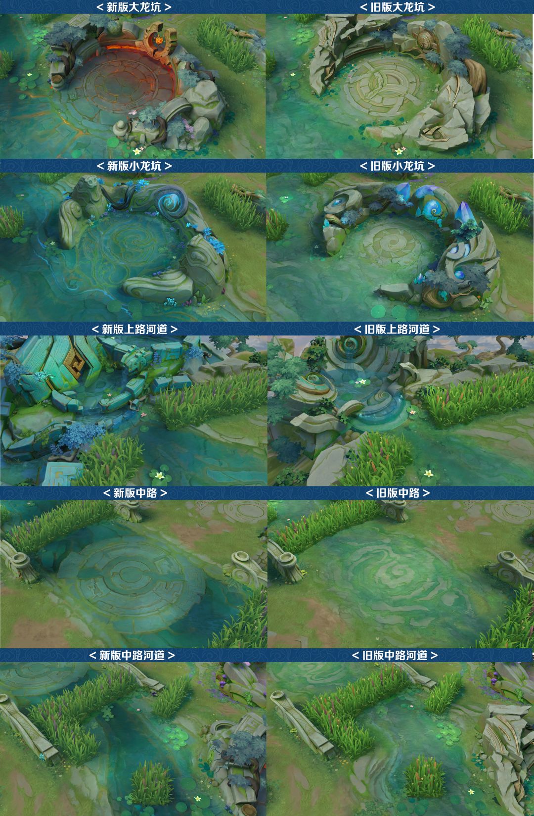 新赛季,地图再次迎来视觉进化!基地、分路、河道地砖纹理全面重制,呈现出更精细的材质、更鲜明的区域划分,只为带来更清晰的视野与更精准的走位体验!本次优化延续了“先民遗迹”的主题设计,在场景中融入更多具有人文气息的设计元素,大大增强地图的细节表现力和观赏性, 让你仿佛真正置身于这片决定荣耀的史诗战场之上!