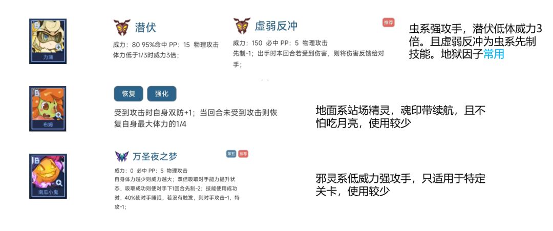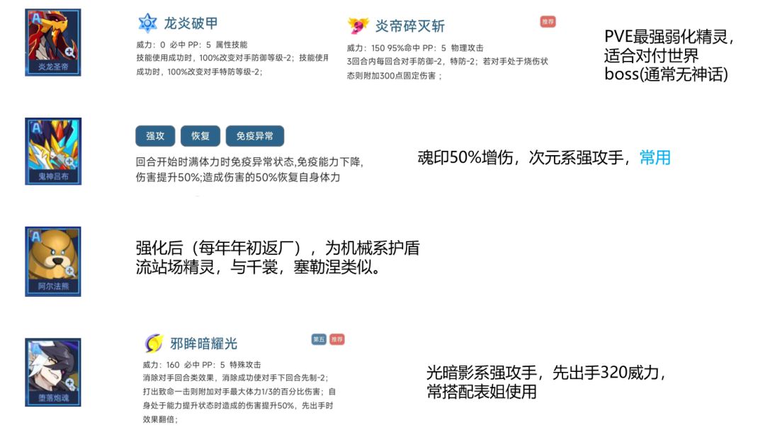 其他两只为PVE功能性精灵,使用较少。
