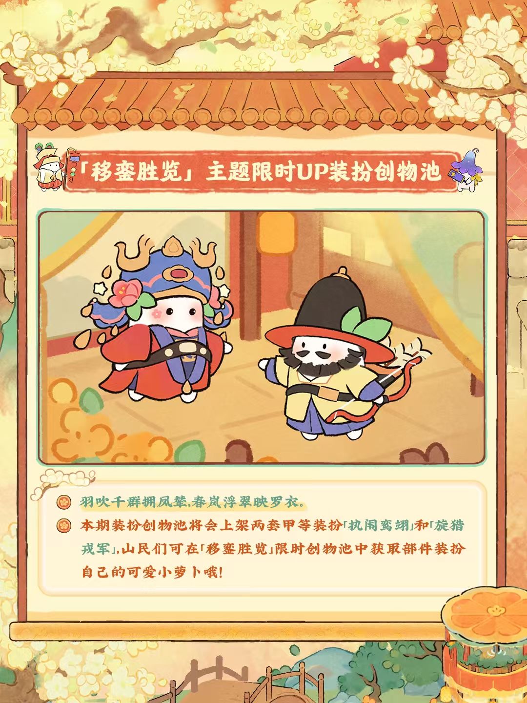 全新紫禁建筑创物池、装扮创物池以及山遇即将上线,重现紫禁城的皇家风韵,感兴趣的山民不要错过哦!