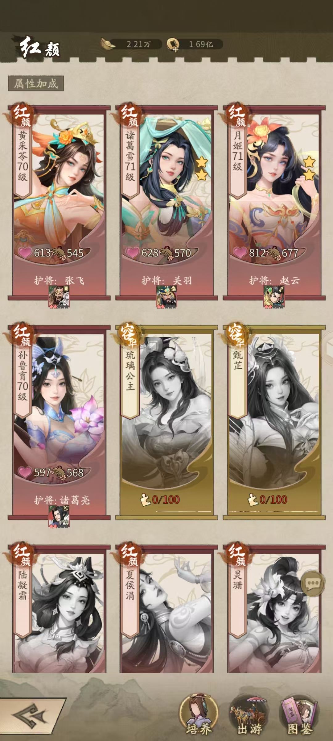 红颜养成均升即可,氪金根据自己情况来,一个金红颜是648,升星根据阵容优先即