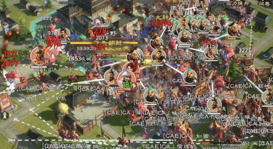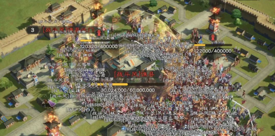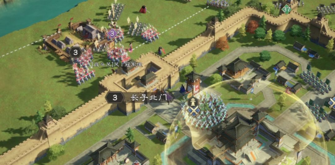 20:00点整,三级城池解锁,1区由【大风月】率先对宛城宣战,仅3分钟即攻破宛城北门;另一边【CAE】和【战斗风】也不甘落后,相继冲破城门,朝城内守军和箭楼发起猛烈攻击。