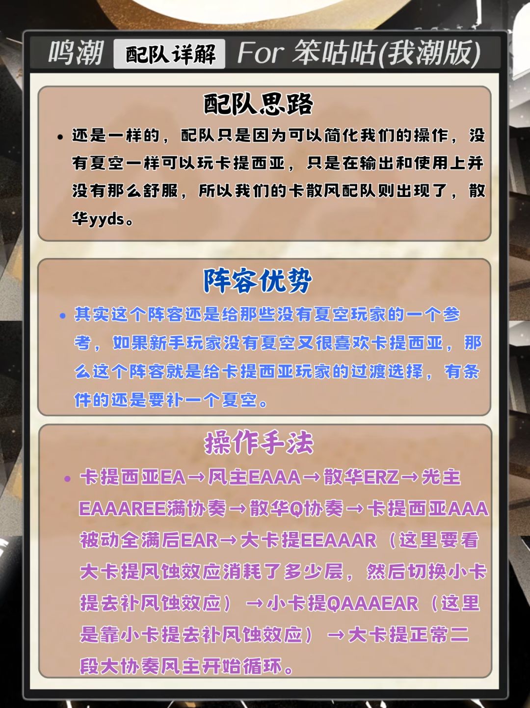 本期内容包含2.4版本“卡提希娅”的配队攻略~ 内含声骸/配队等内容~