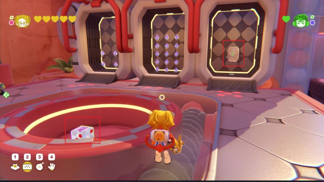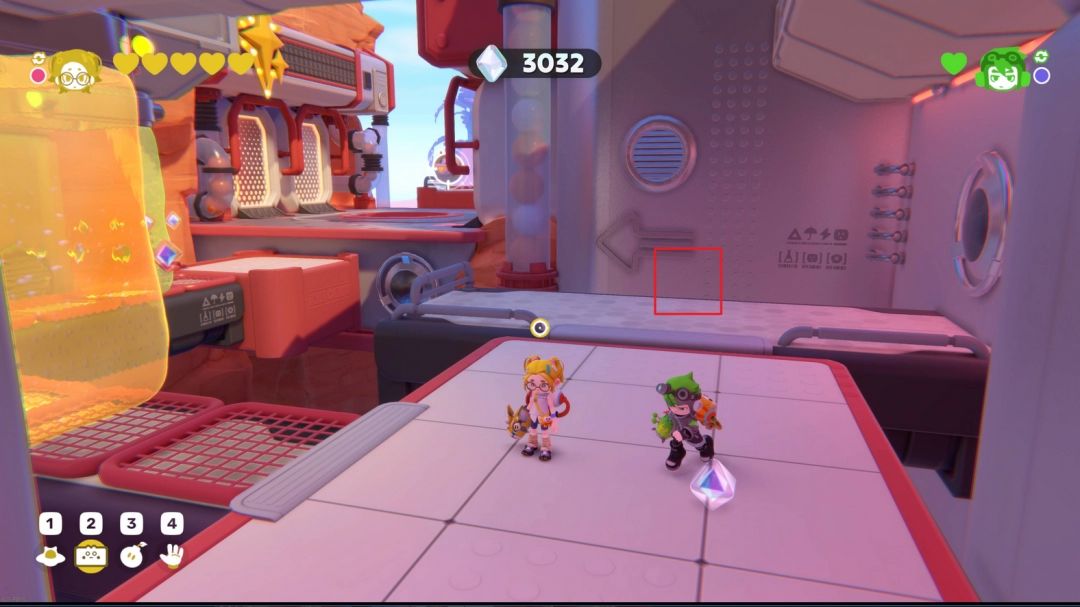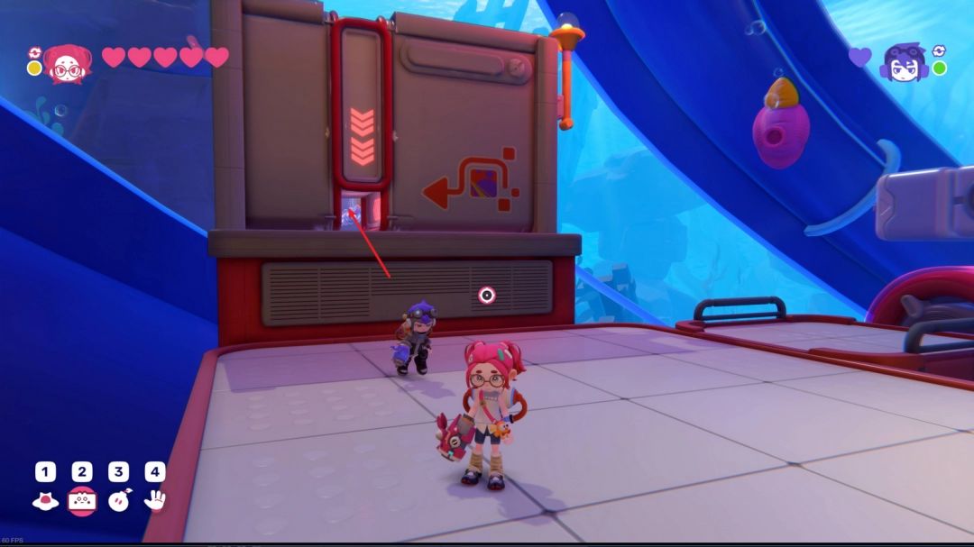 过有激光的红蓝圆盘后,左侧的墙边举盾对齐。
