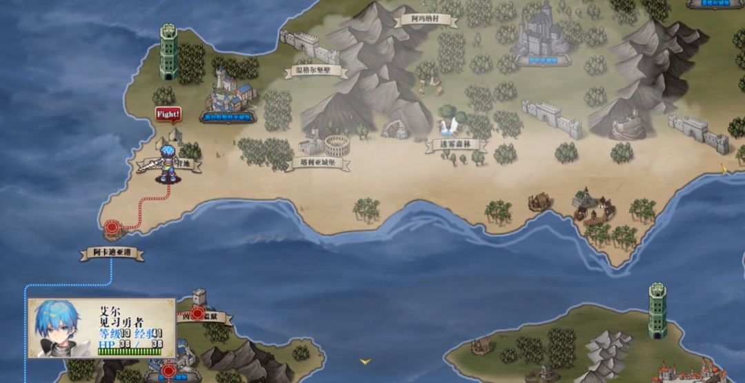 本作提供简单、普通和困难三种难度选项,玩家可以根据个人需求进行选择。游戏采用视觉小说推进剧情与战旗闯关相结合的玩法,战斗采用标准的回合制系统,玩家通过控制一组英雄单位在棋盘式地图上展开战斗。