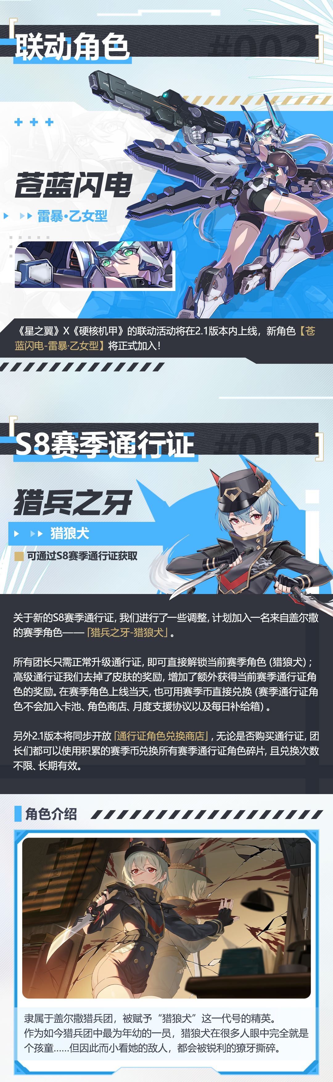 《星之翼》×《硬核机甲》联动上线,更有全新角色「猎狼犬」、「秋云」、「兰斯洛特」、「凯蒂」等你陆续解锁,快跟着阿猫一起来看看吧~